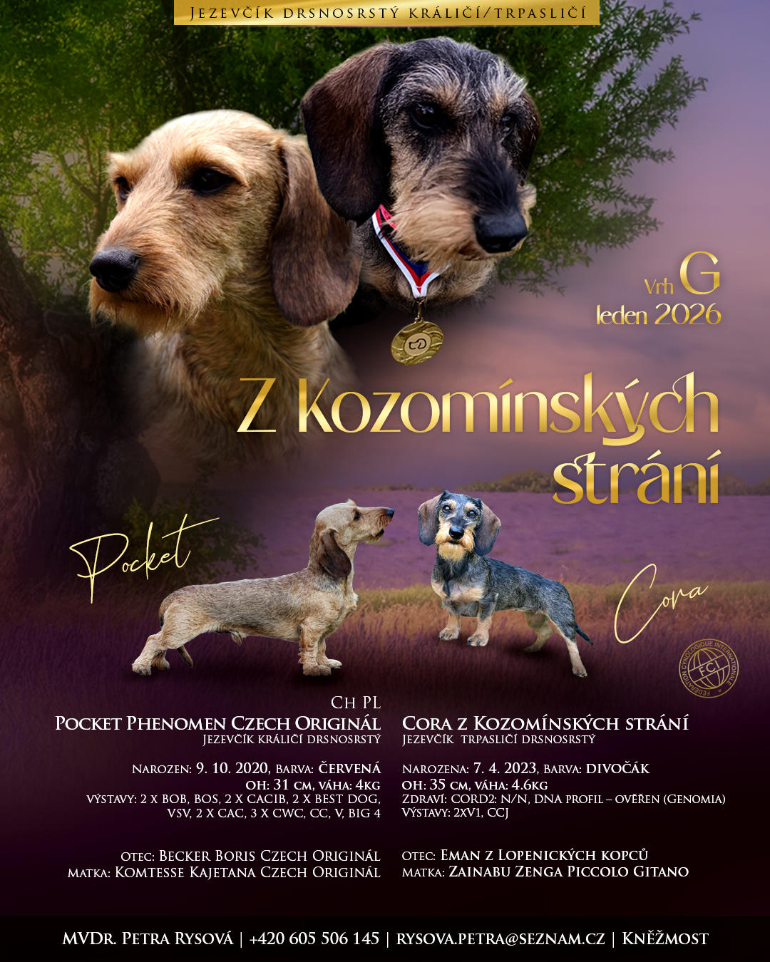 Zadám štěňátka drsnosrstého trpasličího jezevčíka s PP po vynikajících rodičích s odběrem v polovině března. O více informací prosím volejte do ordinace přímo mě. Děkuji, Petra Rysová