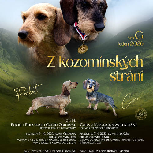 Zadám štěňátka drsnosrstého trpasličího jezevčíka s PP po vynikajících rodičích s odběrem v polovině března.